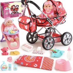 New-Baby Doll Stroller Set for Toddler Girls 3-5, A 12.5" Babydoll with Baby Doll Accessories, Pillow, Blanket & 2 Sets Clothes, Doll Playset Toy Stro$20Queens, NY