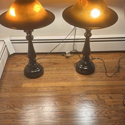 Set Of 2 Table Lamps With Dark Floral Patterned Drum Shades$50Hicksville, NY