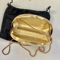 1980s Beoni Lucia Gold Tone Metal Minaudiere Evening Clutch Purse / Italian Crossbody Hardshell Handbag $100Garden City P, NY