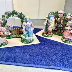 2 Easter / Springtime Acrylic Mounted Display Garden Scenes Resin Bunny Rabbits + Archways Tabletop Holiday Decor$20Garden City P, NY