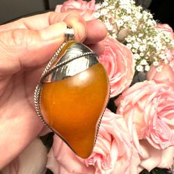 Stunning Mango shape Amber resin with Tibetan silver Pendant 🔥$29Queens, NY