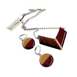 Reclaimed Wood Modernist Earrings Necklace Set, Natural Wooden Jewelry, Arrow Attached Pendant, Circle Dangles, Artisan Jewelry Gift$29Ossining, NY
