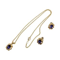Gold Plated Floral Earrings Necklace Set, Purple Glass Stones, Pendant with Chain, Delicate Minimalist Jewelry, Retro Vintage Costume Jewelry Gift$24Ossining, NY