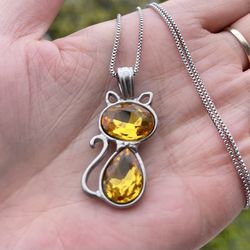 Cute Girls Women Faux Yellow Citrine Lucky Kitty Cat Pendant Necklace On sale$17Queens, NY
