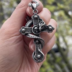 Mens Vintage Dragon Skull Cross Pendant Necklace Stainless Steel Jewelry$23Queens, NY