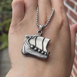 Mens Stainless Steel Nordic Viking Pirate Ship Pendant Necklace For sale$20Queens, NY