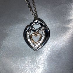 Mom Holding Baby/child Heart Pendant 925 Silver W/ 10k Dangling Heart $60Queens, NY