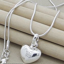 Elegant 925 sterling Silver Heart Shape Pendant Necklace $13Lyndhurst, NJ