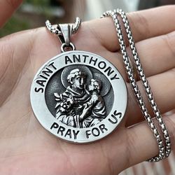 Jesus St Saint Anthony Medal Medallion Pendant Necklace Stainless Steel$18Queens, NY