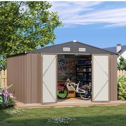 10 x 10 FT Outdoor Storage Shed,Metal Yard Shed with Design of Lockable Doors, Utility and Tool Storage for Garden, Patio, Backyard, Outside use,Brown$400Springfield, NJ