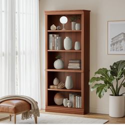 Bookcase Bookshelves, 5-Shelf Tall Bookcase 71" Wood Open Display Floor Bookshelf, Large Storage Organizer for Library, Bedroom, Living Room (Cherry) $75Union, NJ