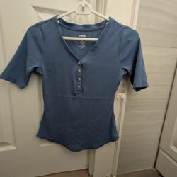 Sonoma Blue Ribbed Short Sleeve Button-Up V-Neck Top$10City Of Orange, NJ
