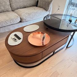 Modern Oval Coffee Table Set (Glass + Wood, Storage)$450Jersey City, NJ