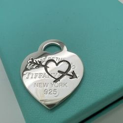 Tiffany Co Sterling Silver Etched Heart and Arrow Large Charm Pendant$139Queens, NY