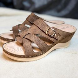 Women’s Comfort Wedge Sandals Taupe/ Brown Adjustable Buckle Slides Size US 7.5$20The Bronx, NY