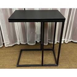Black C-shaped side table with a metal frame. $30Greece, NY