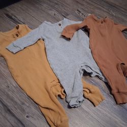 3 Piece Ribbed Onsie Set In Mustard, Grey And Brown 3M$5Byron, NY