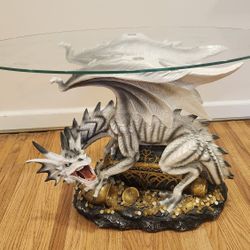 Ice Armor Oval Tempered Glass Top White And Black Gaurding Dragon Statue Figurine With Gold Coffee Table 19" H, Polyresin, Full Color$250Rochester, NY