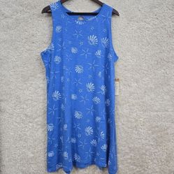 Escape by Habitat Dress Womens XL Blue Shells Cotton Stretch Beach Coastal