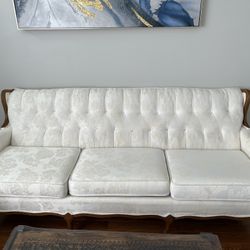 Off White Pottery Barn Couch, Custom Made, Medium Wood Legs With Matching Ottomans $750Rochester, NY