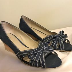Wedge Navy canvas heels. Barely worn Liz Claiborne size 8$5Rochester, NY