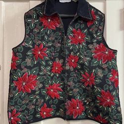 Vintage Dressbarn Poinsettia Tapestry Corduroy Sequin Zip Vest 2XL$30Stuyvsnt Plz, NY