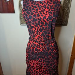 Cache Vintage Leopard Belted Knee Lngth Sheath Bodycon Dress Sz 0 Red Sleeveless$30Gloversville, NY