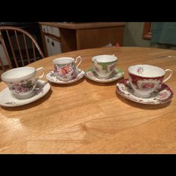 Antique 4 French and English style porcelain tea cups and saucers. $15Slingerlands, NY