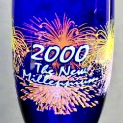 2 Vintage Libbey Cobalt Blue 2000 Millennium Y2K Champagne Flutes $9Saratoga Springs, NY