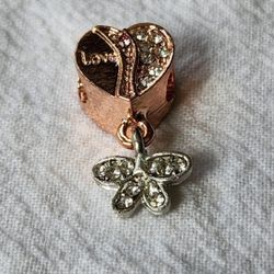 NEW Heart with Flower Dangle Charm. Rose Gold with silver and Clear Rhinestones. Please see all pictures as part of the description. Bundle to save$10Watervliet, NY