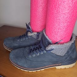 Zara Boys Navy Blue Leather Ankle Work Hiking Boots Side Zip Sz 40 6.5$45Gloversville, NY