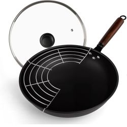 Carbon Steel Wok Pan, Nitrided Pre-Seasoned Round Bottom Woks & Stir-Fry Pans Nonstick, Chinese Wok with Glass Lid & Steel Rack for Gas for All Concav$50Brooklyn, NY