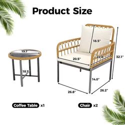 3-Piece All-Weather Wicker Rattan Bistro Patio Furniture Set with Glass Table and Thick Cushions, Beige - Ideal for Balcony, Gar$145Paterson, NJ