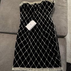 Balmain Black Velvet Crystal Strapless Short Evening Dress$850New York, NY