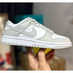 Dunk low-top grey and white sports shoes, neutral-toned leather casual low-top street shoes$181New York, NY