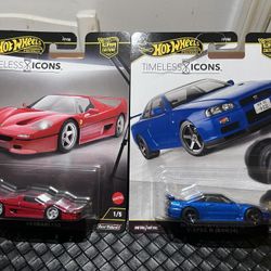 Hot Wheels Nissan Skyline GTR V-SPEC II BNR34 Timeless Icons 2025 And 2025 Hot Wheels Premium Timeless Icons Ferrari F50 Red 1/5 Car Culture Set Of $25Queens, NY