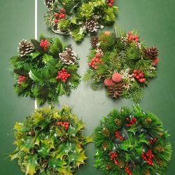 Lot of 5 Vintage Plastic Christmas Candle Holders Wreath Holly and Berries Poinsettia Pinecone$25Wayne, NJ