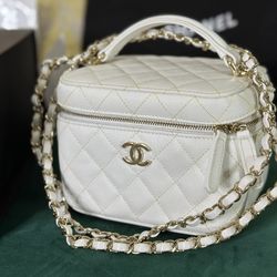 Chanel Vanity Bag Crossbody White Chain Shoulder Purse Caviar Auth New$4,200New York, NY
