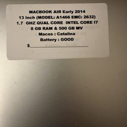 MacBook Air ( 13 Inch 2014 ) 1.7 GHZ Dual Core Intel Core I7 8 GB Ram & 500 GB MV$150Little Falls, NJ