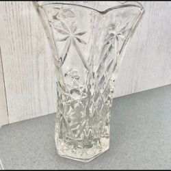 Vtg. Large Flower Vase Clear Glass Geometric Sunburst Star Pattern 10.25”$20Garden City P, NY