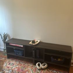 Rustic wood TV stand / media console with open shelving.$80Brooklyn, NY
