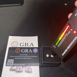 1Ct VVS1 Diamond Earrings 925 Silver Round Cut GRA Certificate Papers Diamond Tester Pass Valentine Gift $200Queens, NY