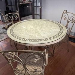 1.5 “ Thick Handcrafted Mosiac Dining Room Table With 3 Rustic Cast Iron Chairs & .5” Glass Top$250Fulton, NY