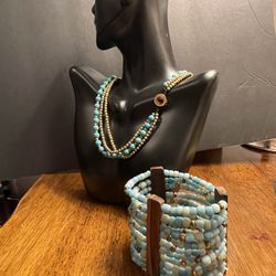 New Turquoise, Copper And Wood, Necklace And Boho Bracelet. Never Worn Set!$80Syracuse, New York