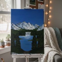 Original Mountain Landscape Painting – Snowy Peaks, Waterfall & Lake – Nature Wall Art Canvas$250Cortland, NY