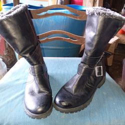 Tall Black Leather Boots Made in Poland Size 7.5$30NY, US