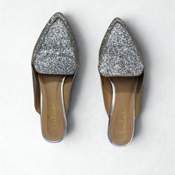 Lulus Womens Joelle Mule Flat Shoes Silver Slip On Sequin Pointed Toe Size 9$5Solvay, NY