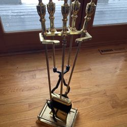 Vintage Metal Indoor Outdoor FIREPLACE TOOLS stand 4 Piece set gold Finish Tool Set$45Brewerton, NY