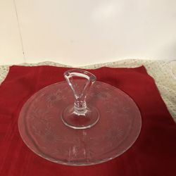 11” GLASS HANDLED SERVING DESSERT PASTRY PLATE ETCHED FLORAL DESGN$7Altamont, NY