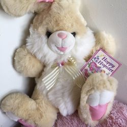 New with tag HOPPY HOPSTER BUNNY // Rare Cream Peach Rabbit Plush Fancy Soft Toy Stuffed Animal Kawaii Easter Dan Dee Tb Trading nwt Vintage 22in 80$35Delmar, NY